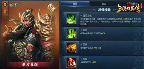【关羽】支援型武将,凭借高输出,快速斩杀敌方部队后,奔袭支援其他队友。
