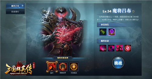 针对主公深处弱势的情况,系统为各位参战的主公准备了辅助技能,分别是猛攻(己方主将攻击力+5%)、荆棘战甲(主将收到伤害会反弹6.4%)、无视抵抗(控制几率100%),三种辅助技能择一种上阵,接下来就到了拼武将数量和等级的时候了!攻打魔将时全体将领可出战,主公可自行更改上阵顺序,准备好了就可以点击“挑战”参与战斗了。
