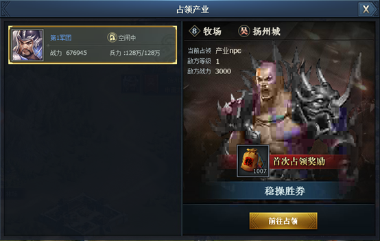 占领的产业除了自然产出资源,玩家还可以通过使用相应道具对不同产业进行征收短时间内获取大量资源。需要重点注意的是,玩家可以使用狩猎令在已占领的牧场中围猎,获得出猎将领碎片。同样的,产业级别越高,征收获得的资源越多。